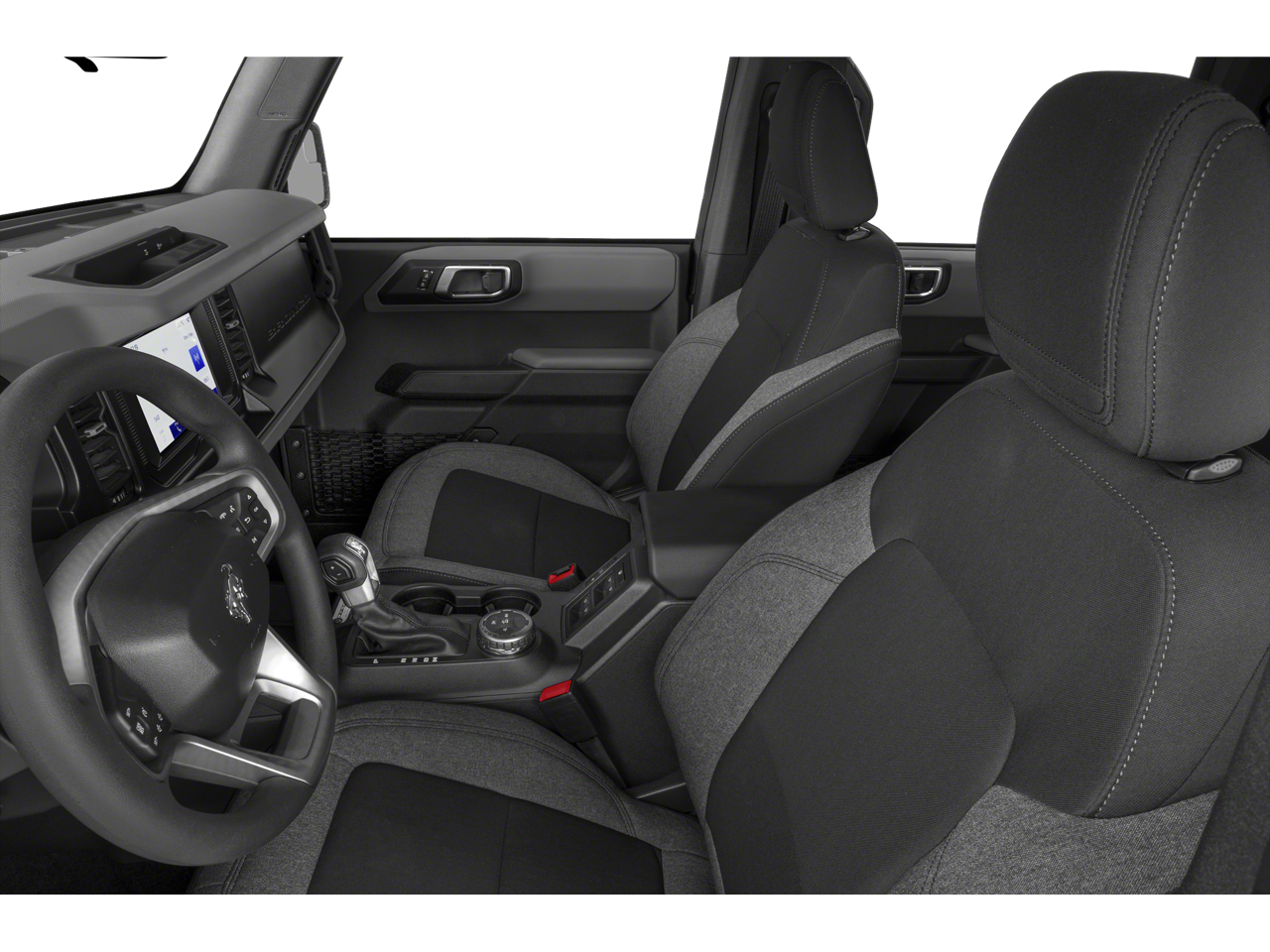 Step inside and you'll be greeted by a premium, well-appointed cabin that combines comfort and functionality. The marine-grade vinyl bucket seats, leather-wrapped steering wheel, and intuitive SYNC 4 infotainment system create an environment that is both rugged and refined. Thoughtful features like the Hard Top Sound Deadening Headliner and Front Row Top Panels Storage Bag enhance the overall driving experience.