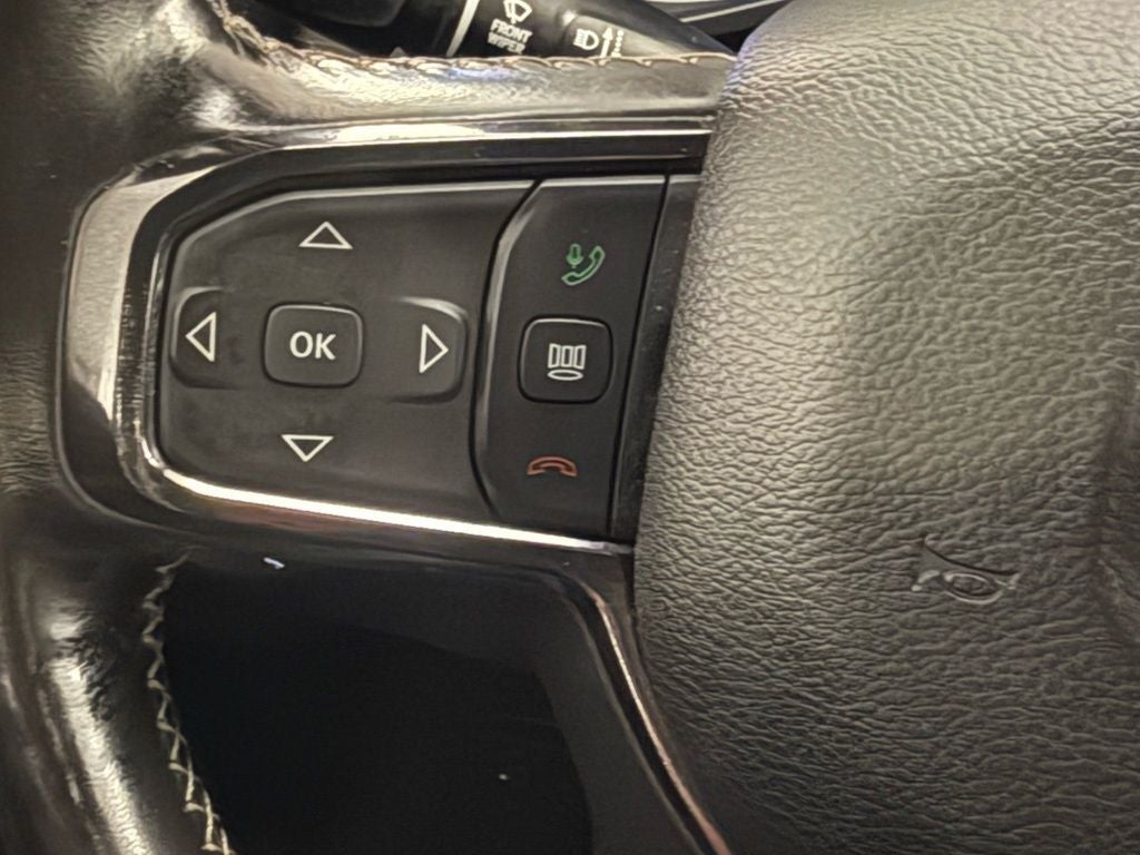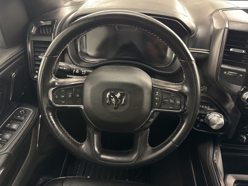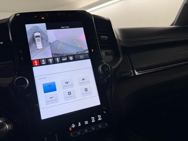 The interior of this Ram 1500 is equally impressive, offering unparalleled comfort and convenience. Sink into the premium leather-trimmed bucket seats, which are both heated and ventilated for year-round comfort. Stay connected with the Uconnect 5 navigation system and premium harman/kardon sound system, while the digital rearview mirror and wireless charging pad add modern convenience.